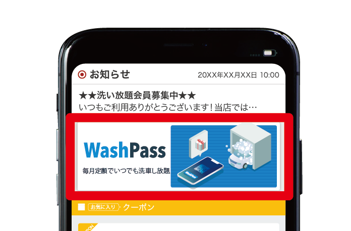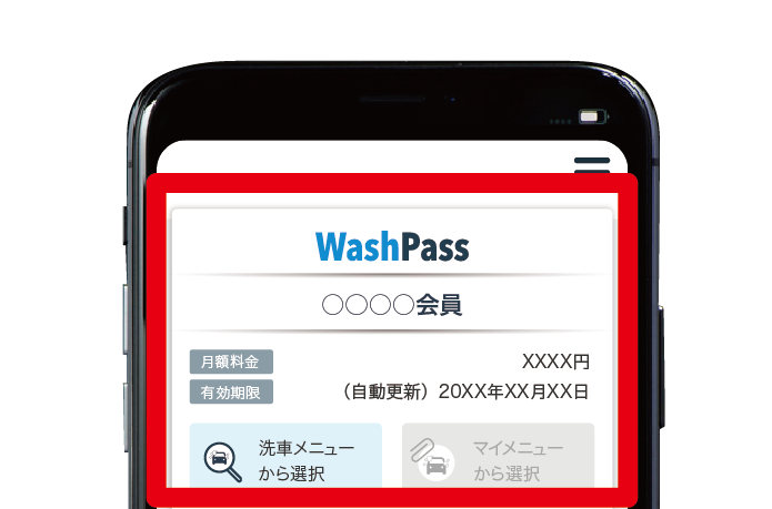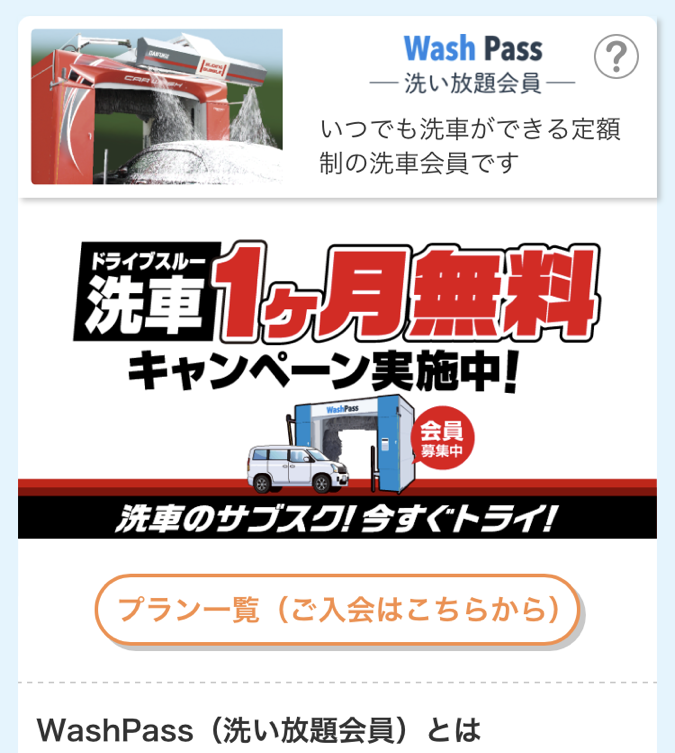 アプリのTOPに「Wash Pass」というボタンがございますので、こちらをタップしてください!