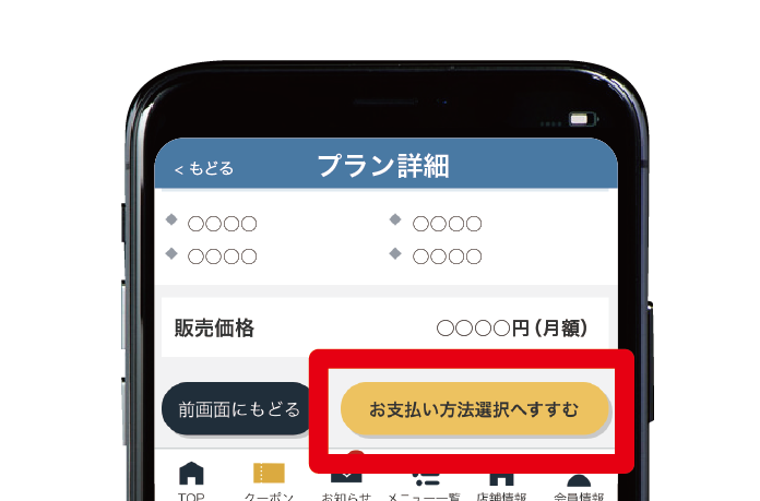 「プラン一覧(ご入会はこちら)」をタップしてください!タップしますとプラン一覧が表示されますので、ご希望のプランをお選び頂き、タップしてください!